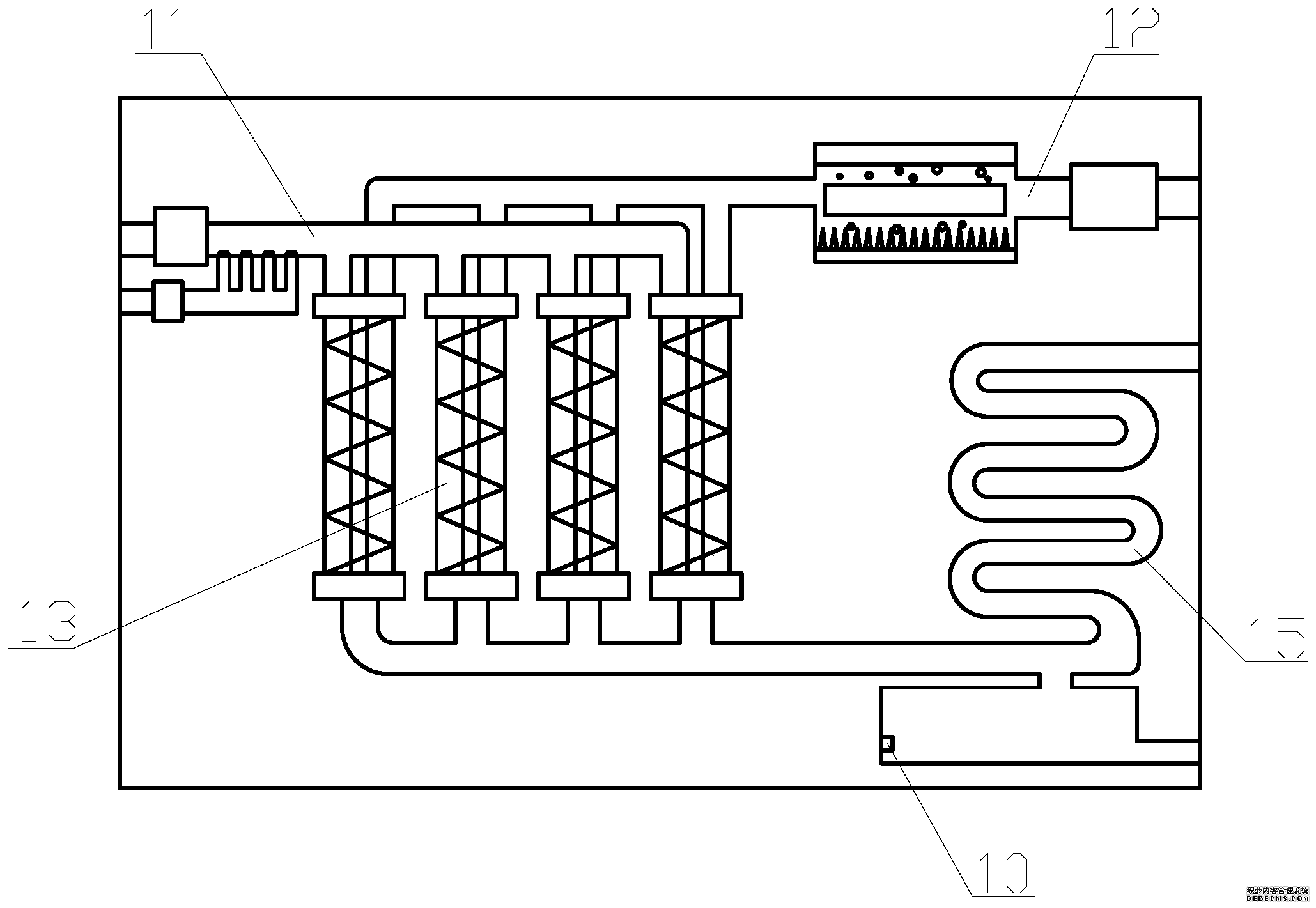 所述氣液輸出模塊(14)的輸出端分為冷凝彎管(8)出口和儲液箱(9)的出口;